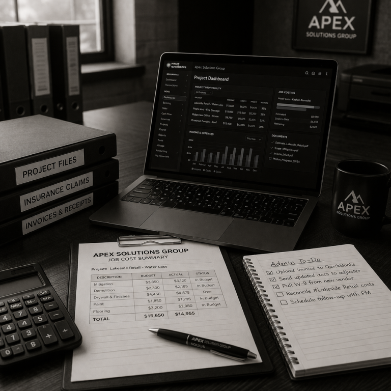 Effective project support requires more than communication and paperwork. Apex Solutions Group offers organized administrative support that helps clients keep project details, documentation, and financial tracking aligned throughout the process. With QuickBooks Online support and job costing review included, along with the added expertise of a certified QuickBooks Online ProAdvisor, we provide practical back-office guidance that supports greater visibility and stronger organization.
